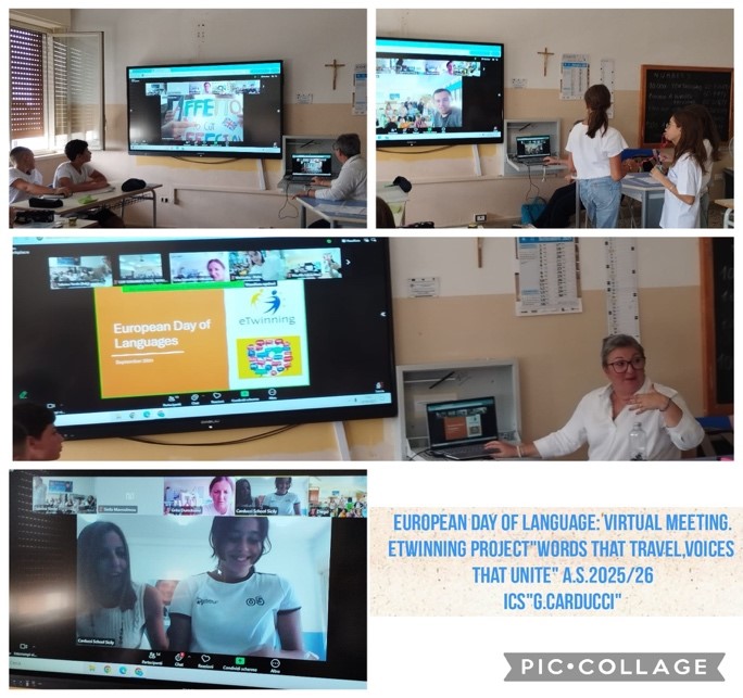 Le classi prime scuola secondaria dell’ICS “G. Carducci” di San Cataldo, in data 26 settembre 2025, hanno inaugurato le attività eTwinning 2025/26 con una videoconferenza tra studenti dei Paesi partner del progetto “Words that travel, voices that unite”, durante la Giornata Europea delle Lingue. Gli alunni si sono presentati in inglese, condividendo curiosità sulla lingua italiana, tra cui frasi omografe ed espressioni idiomatiche, riflettendo così sull’importanza della comunicazione e della diversità linguistica.